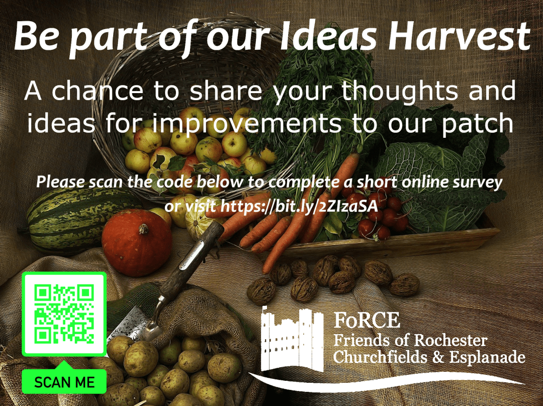 The Friends of Rochester Churchfields and Esplanade (FoRCE) would like you to share your thoughts and ideas for possible improvements to the greenspaces from Rochester Bridge along to Baty’s Marsh and up to St Margaret’s Church by completing an online survey – which should only take around 5mins.
