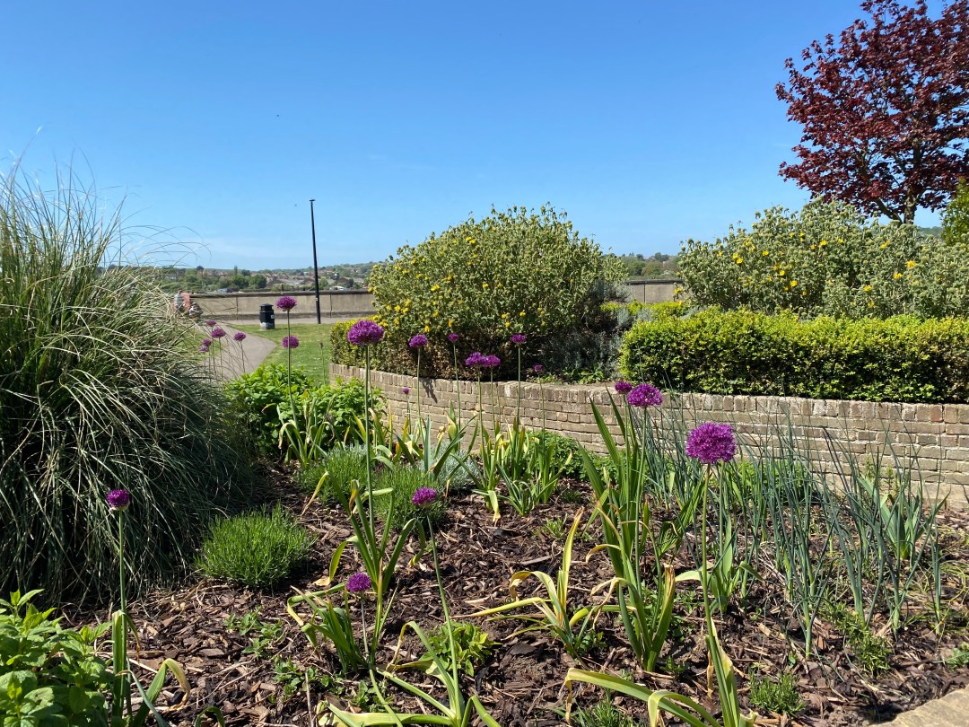 The Suffrage Sensory Garden on Rochester’s Esplanade opposite the Castle is really coming alive this spring thanks to the efforts of the Friends of Rochester Churchfields & Esplanade (FoRCE) and the generosity of donors and gardening volunteers. The replanting work on the first bed of three beds is complete and some of the herbs and sensory plants are beginning to flower.