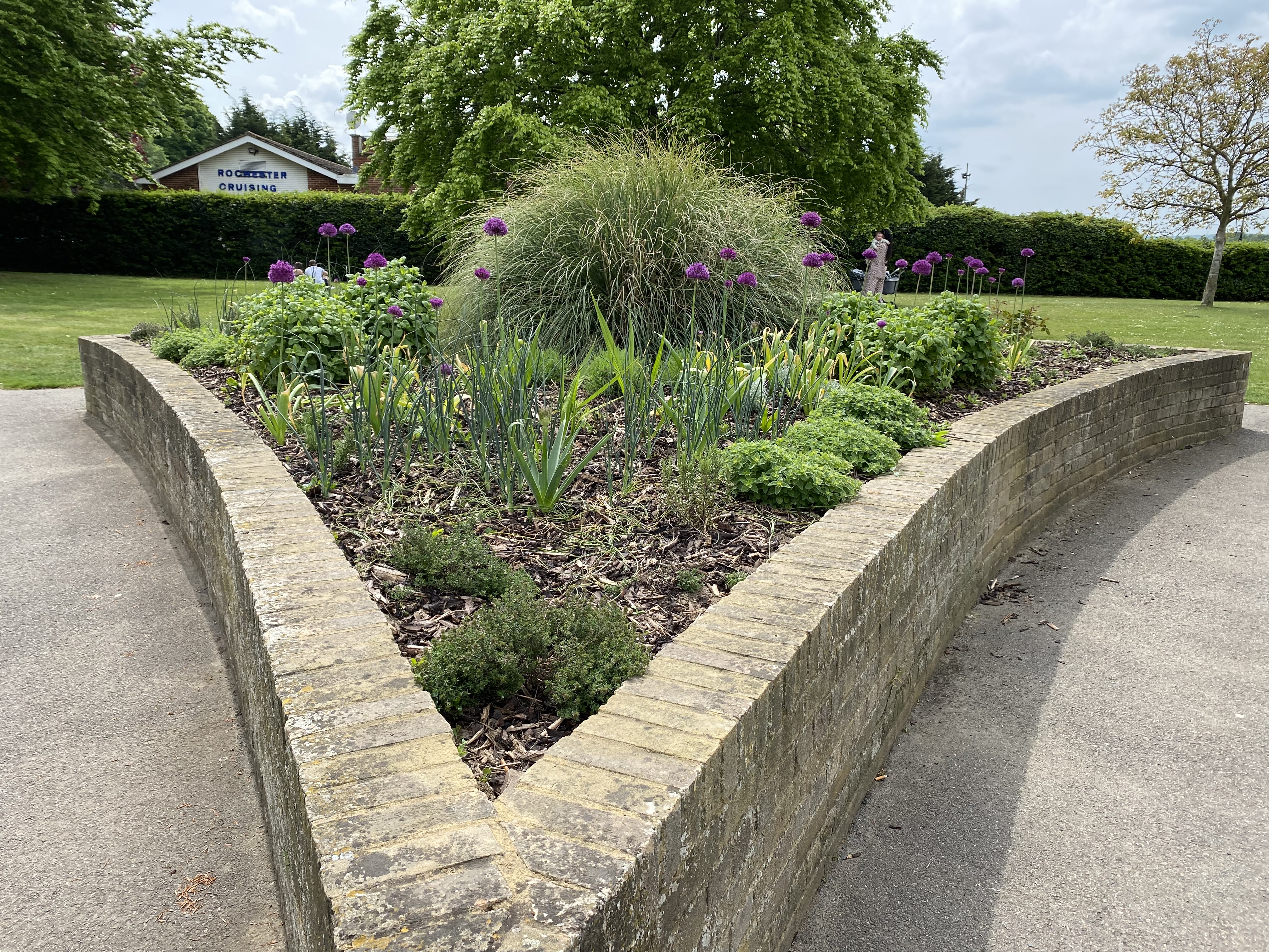 The existing raised garden, consisting of three brick built raised beds in a circle which are the perfect height for all-ability access and, once complete, will be dedicated to the memory of local non-militant suffragist Vera Conway Gordon and her work within the community.